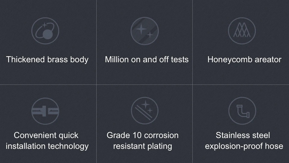 The VGX faucet has undergone a multi-layer electroplating process, and has passed the international standard salt spray test to reach the level 10 standard. After a long time use, there‘s no white spots, patina and rust on surface
