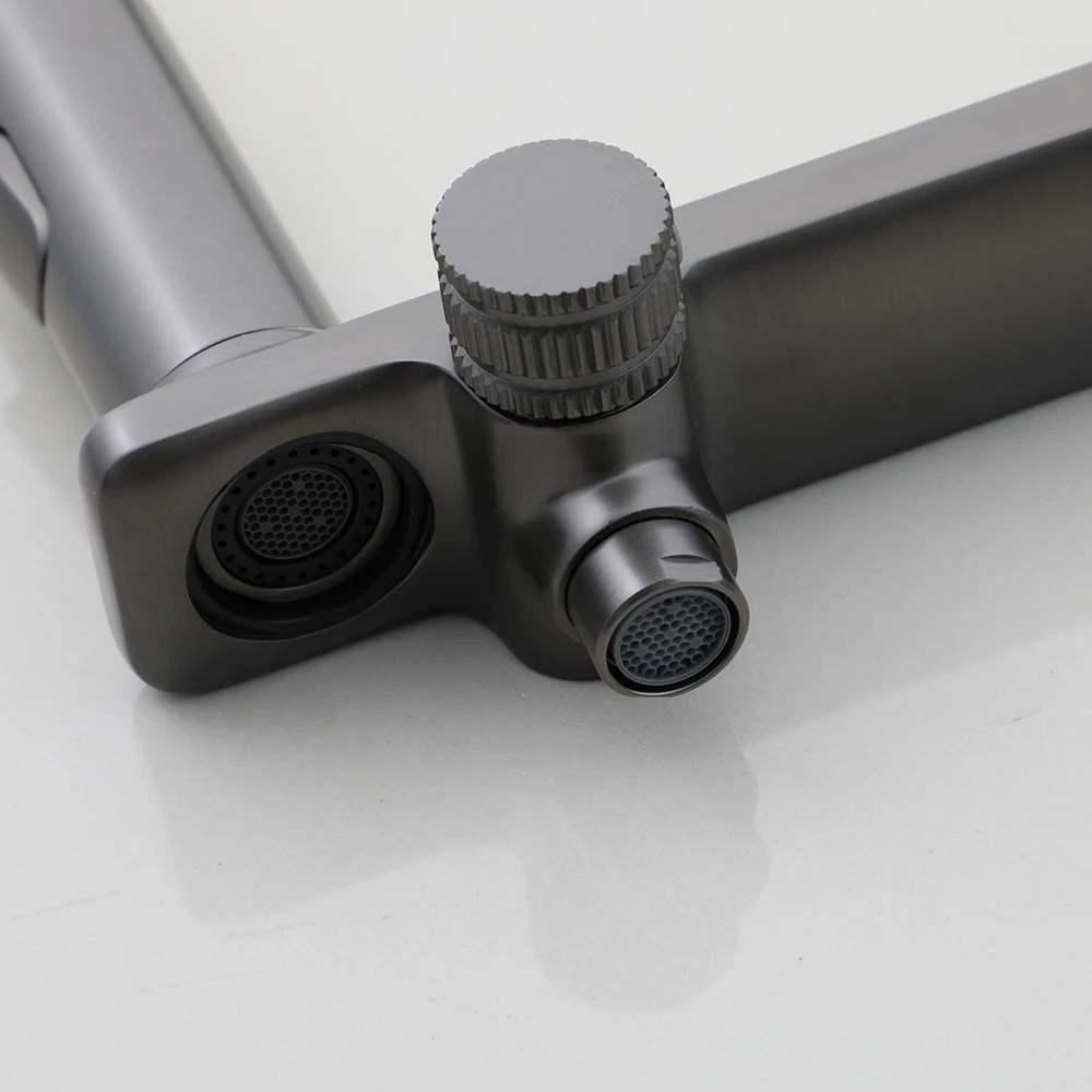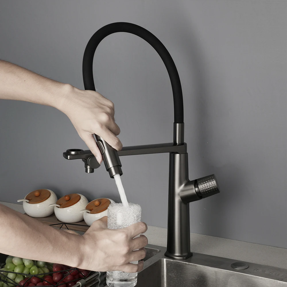 การตั้งค่าโหมดคู่-ก๊อกน้ำสำหรับห้องครัวของคุณด้วยเครื่องพ่นแบบดึงลงได้ให้ละอองที่มีประสิทธิภาพแบบละอองที่นุ่มนวลและปราศจากการกระเด็นเนื่องจากมีรูยางแข็ง เครื่องพ่นก๊อกน้ำอ่างล้างจานในครัว360องศาสวิตช์สามารถวางได้ในทุกตำแหน่งตามที่คุณต้องการ